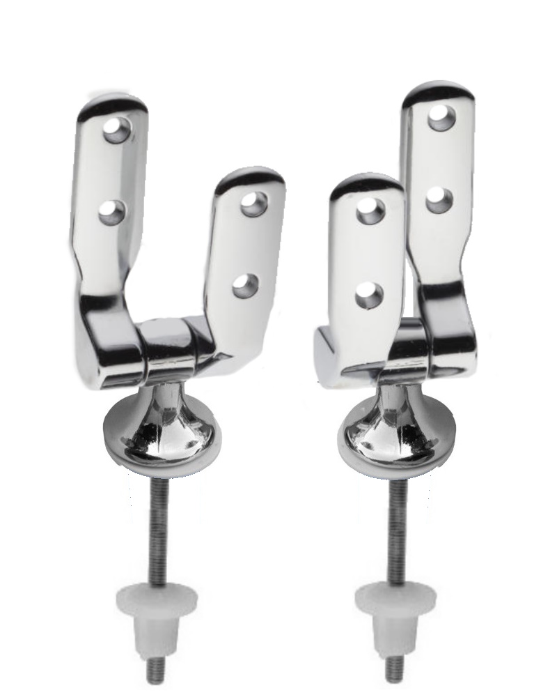 Cerniere copri Wc FISSE per wc con fori passanti. CERNIERE PER SEDILE WC. Cerniere per copri water ideali come ricambio e per il montaggio delle tavolette wc con distanza fori circa 1,9 cm. Nella confezione troverete le 2 cerniere wc per sanitari con fori passanti, 2 perni di fissaggio con sistema ad espansione per fermare il copri water al vaso kit guarnizioni per il montaggio delle cerniere del coprivaso.
